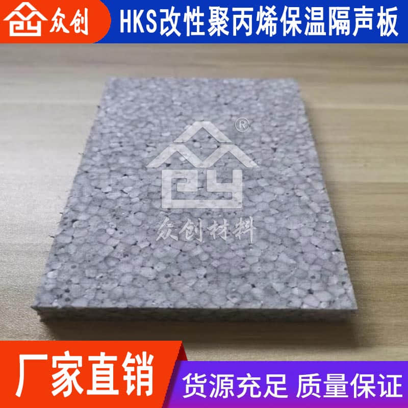 HKS改性聚丙烯保溫隔聲板是由浙江眾創材料科技有限公司研發生產的新型epp樓地面保溫隔聲材料,主要是為了解決樓層與樓層之間的保溫隔聲問題。